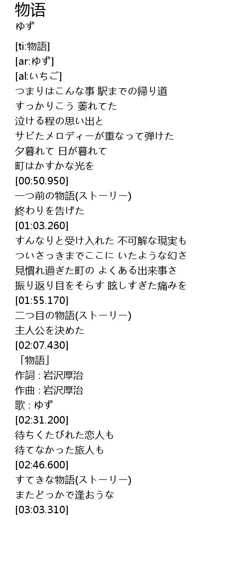 | [01:56.330] | 二つ目の物語(ストーリー) |