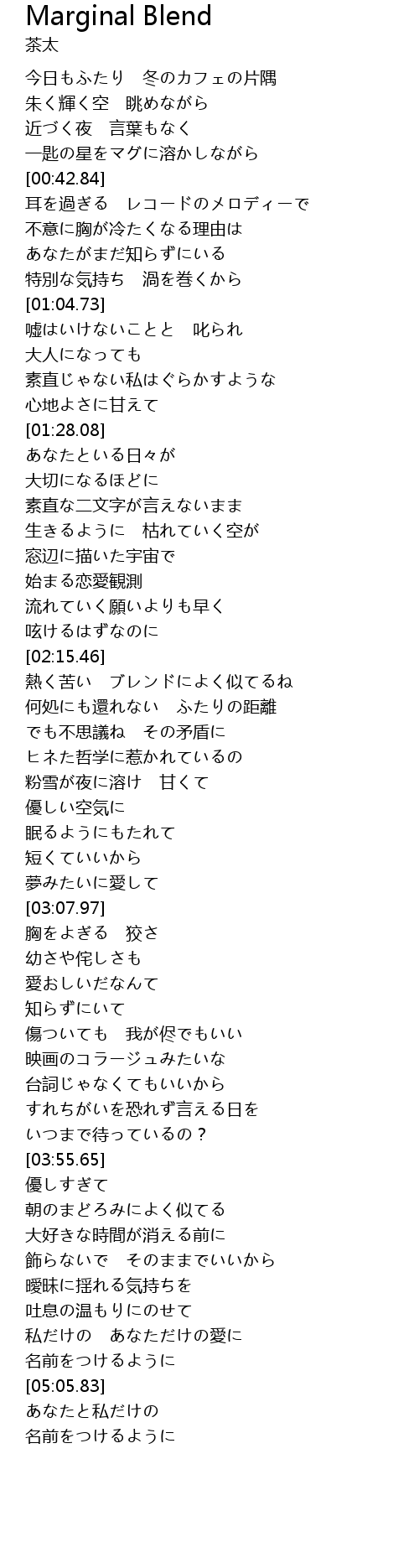 | [02:24.28] | 熱く苦い ブレンドによく似てるね |
