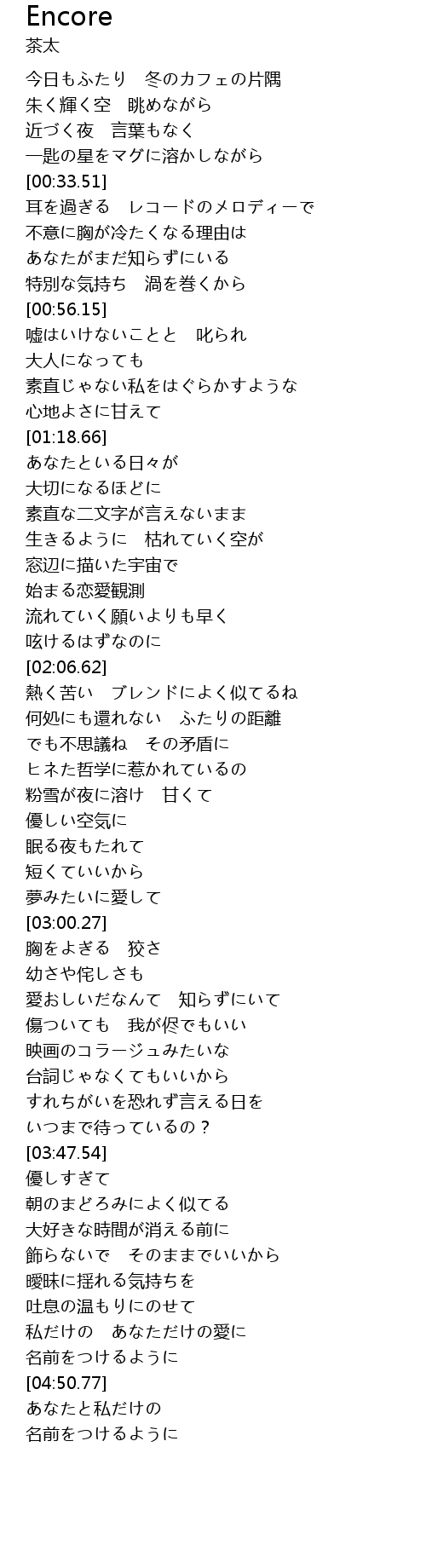 | [04:34.16] | 吐息の温もりにのせて |
