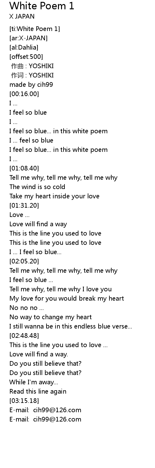 | [02:06.25] | Tell me why, tell me why, tell me why |