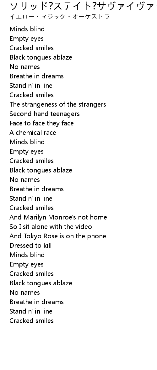 ソリッド?ステイト?サヴァイヴァー ?? Lyrics