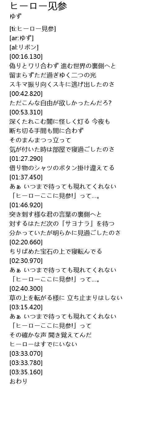 | [01:43.130] | 「ヒーローここに見参!」って…。 |
