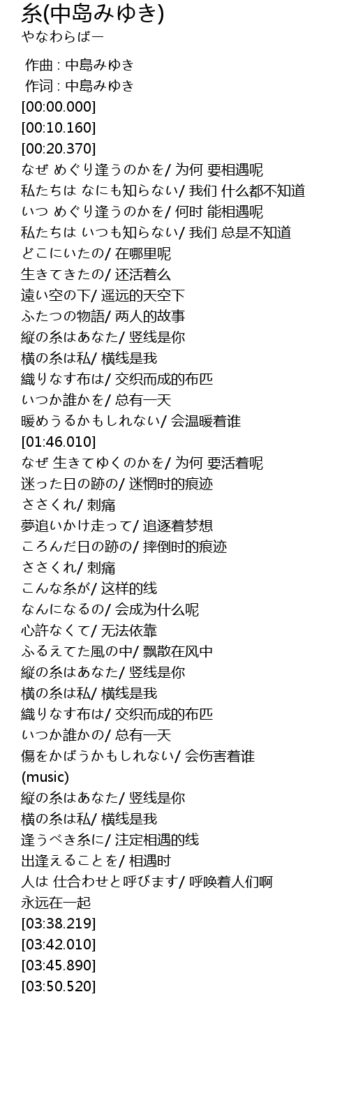 | [02:36.100] | 縦の糸はあなた/ 竖线是你 |