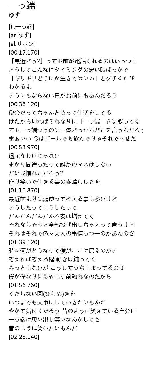 | [00:41.230] | はたから見ればそれなりに「一っ端」を気取ってる |