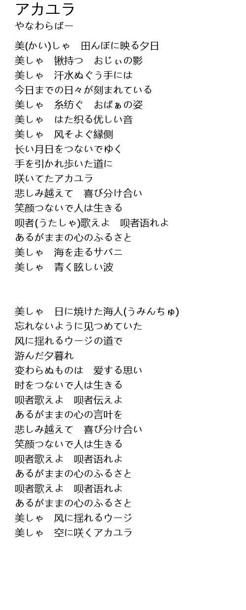 呗者(うたしゃ)歌えよ 呗者语れよ |