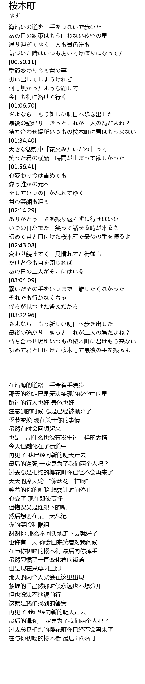 | [03:41.29] | 待ち合わせ場所いつもの桜木町に君はもう来ない |
