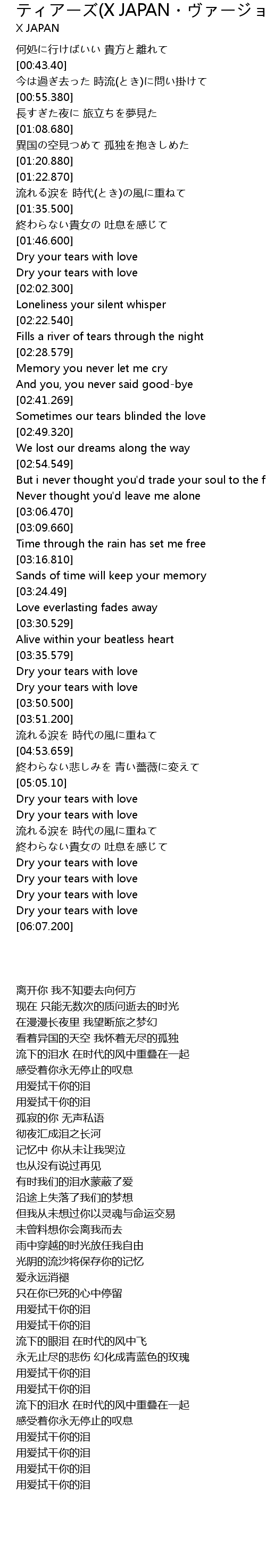 | [06:00.30] | Dry your tears with love |