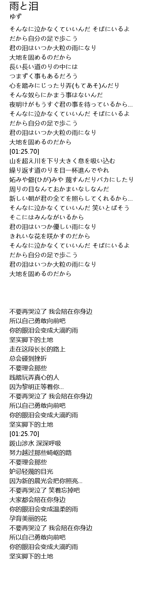| Song | 雨と泪 |