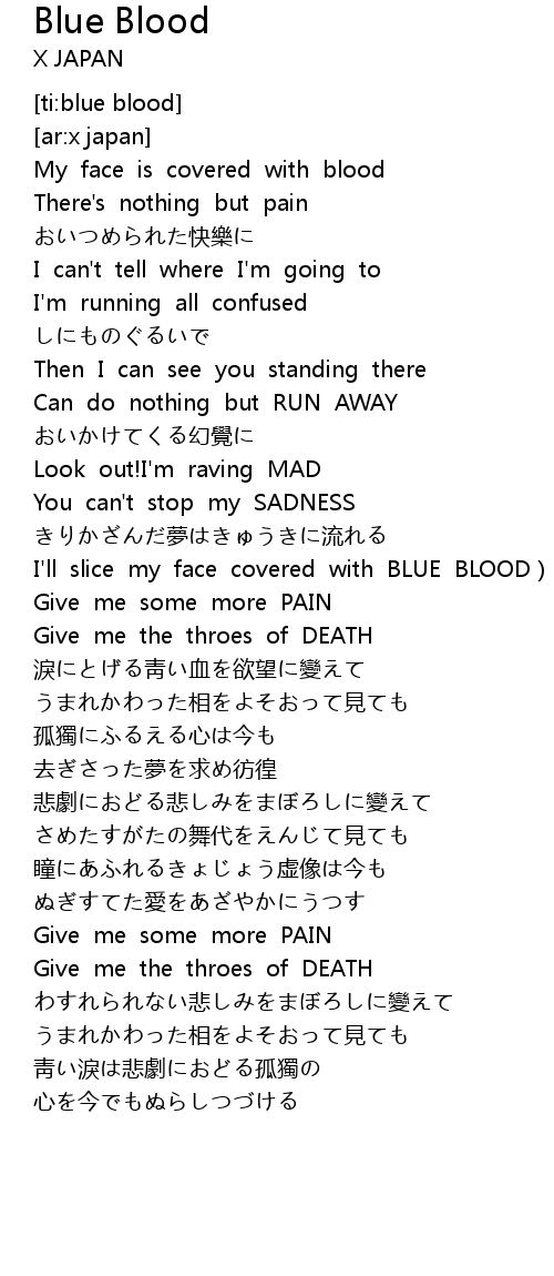 | [01:18.38] | I'll slice my face covered with BLUE BLOOD) |