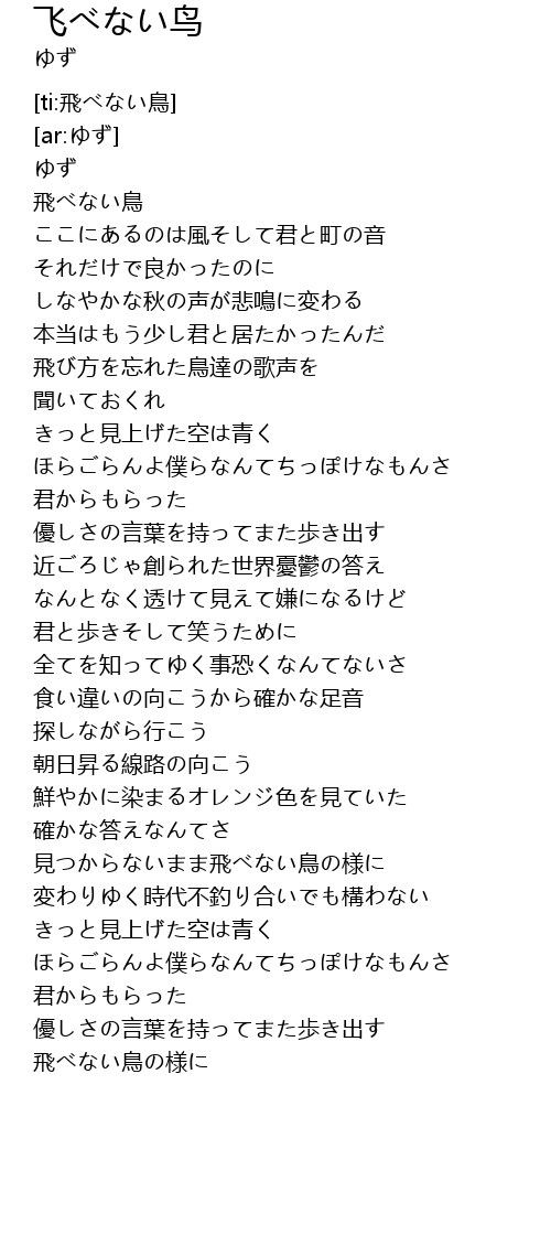 | [02:54.919] | 見つからないまま飛べない鳥の様に |