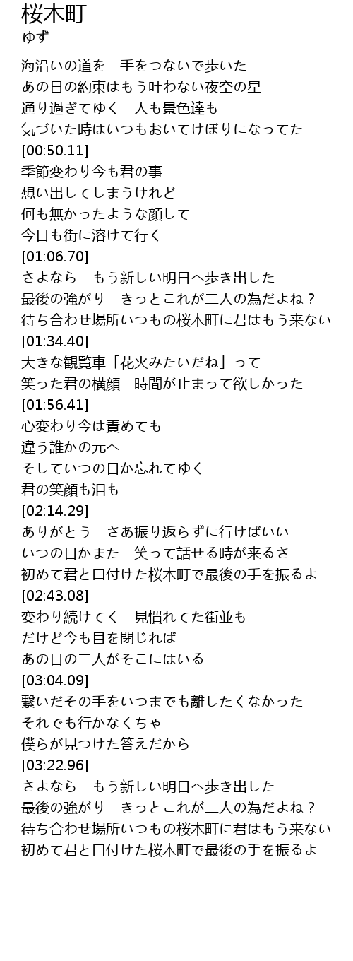 | [03:41.29] | 待ち合わせ場所いつもの桜木町に君はもう来ない |