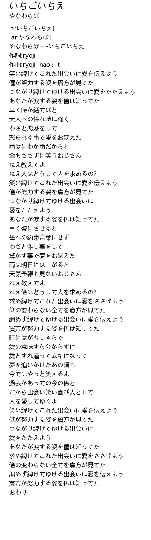 | [00:02.562] | やなわらばー-いちごいちえ |