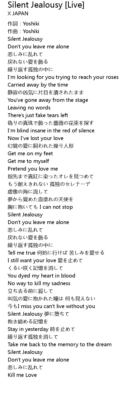 | [00:15.080] | zuò qǔ: Yoshiki |