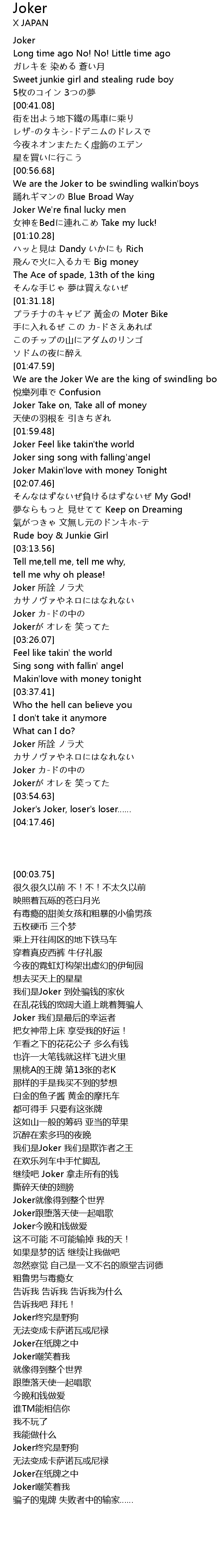 | [03:23.91] | Jokerが オレを 笑ってた |
