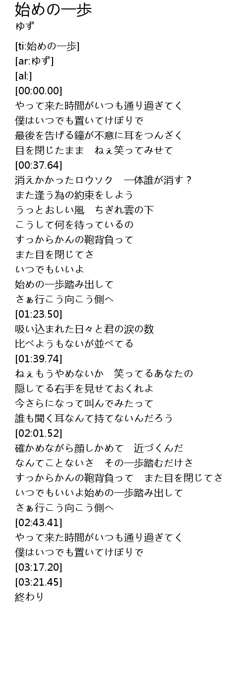 | [02:29.99] | いつでもいいよ始めの一歩踏み出して |