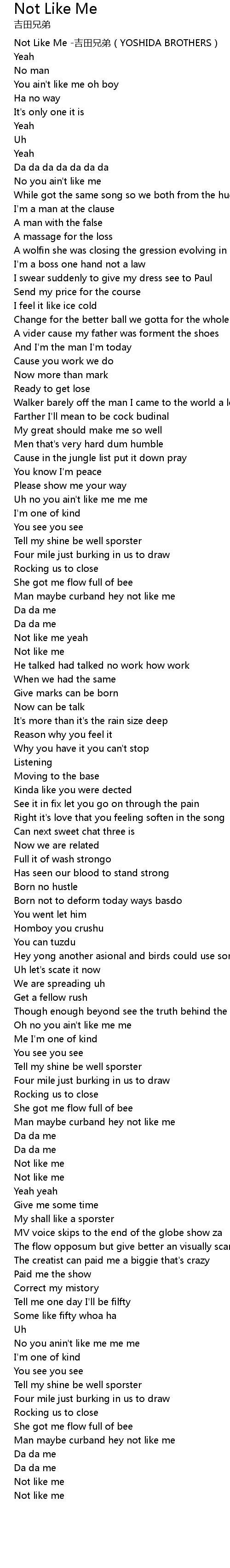 | [00:00.424] | Not Like Me jí tián xiōng dì YOSHIDA BROTHERS |