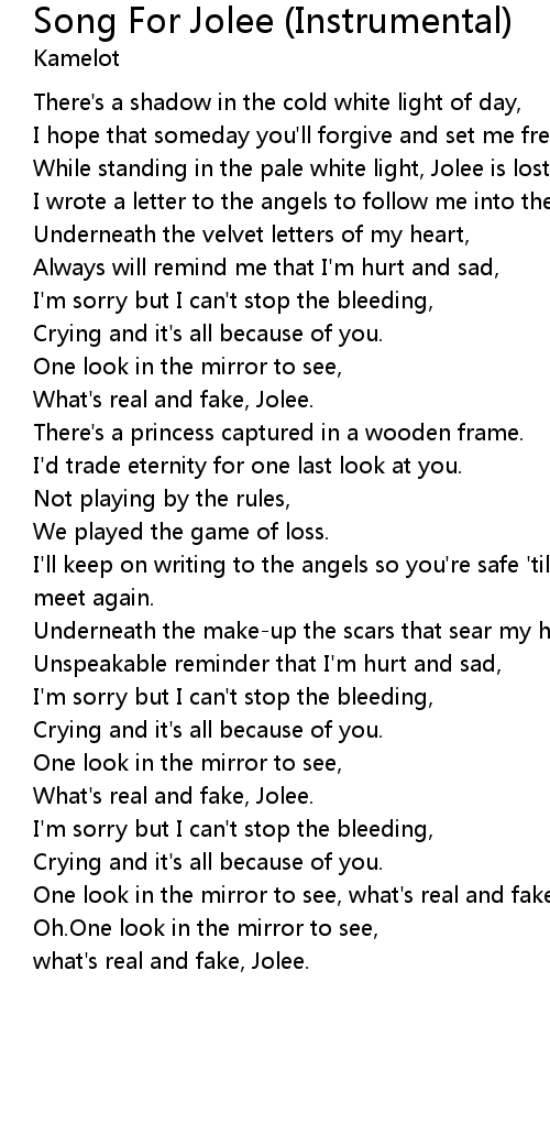While standing in the pale white light, Jolee is lost, |