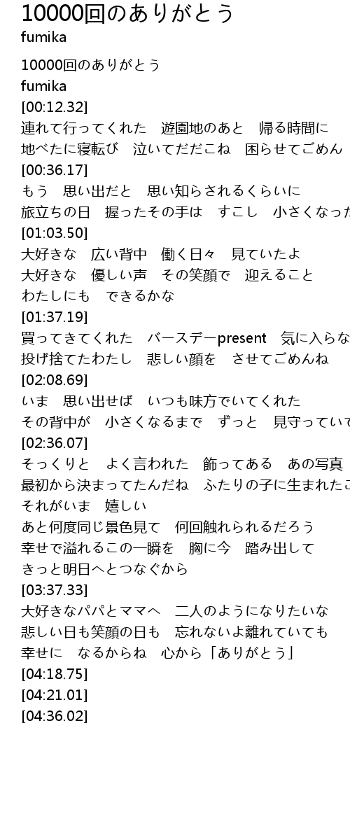 | [00:00.00] | 10000回のありがとう |