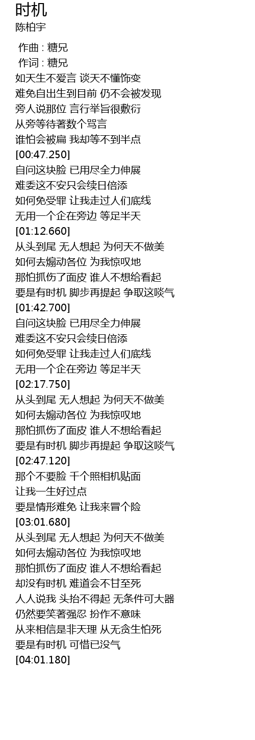 | [00:41.630] | 谁怕会被扁 我却等不到半点 |