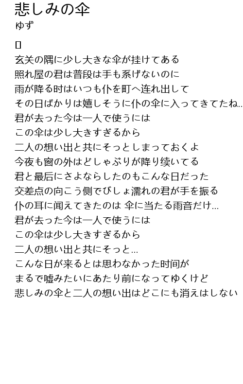 | 悲しみの伞と二人の想い出はどこにも消えはしない |