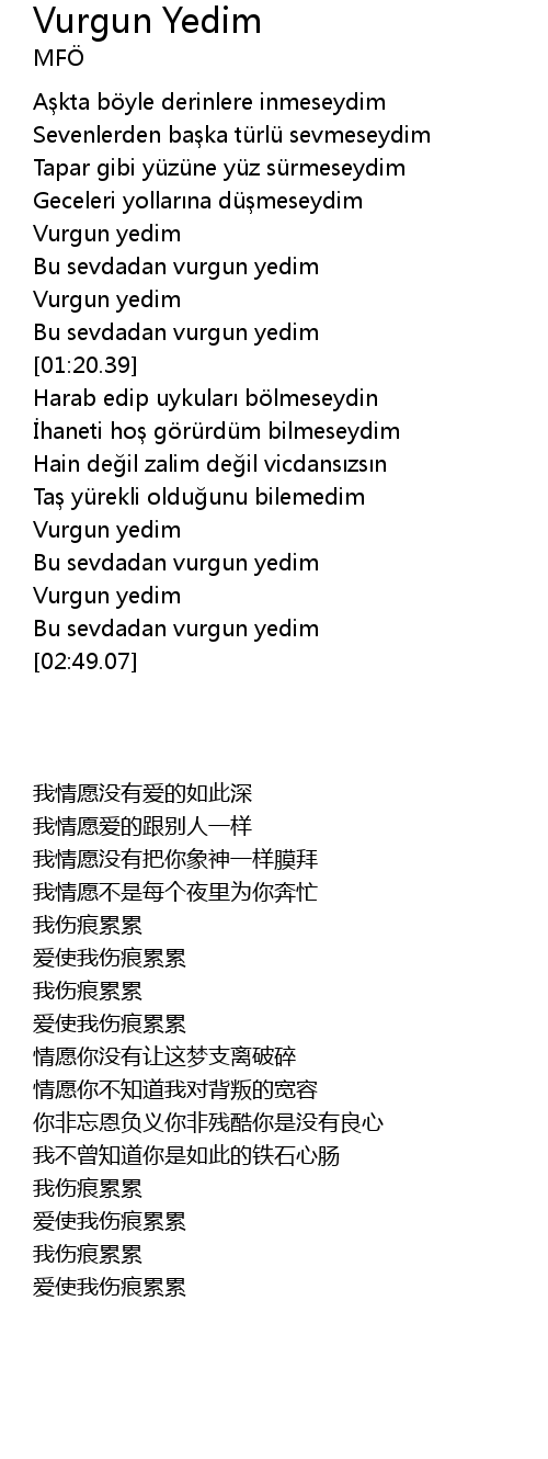 | [02:38.23] | Vurgun yedim |