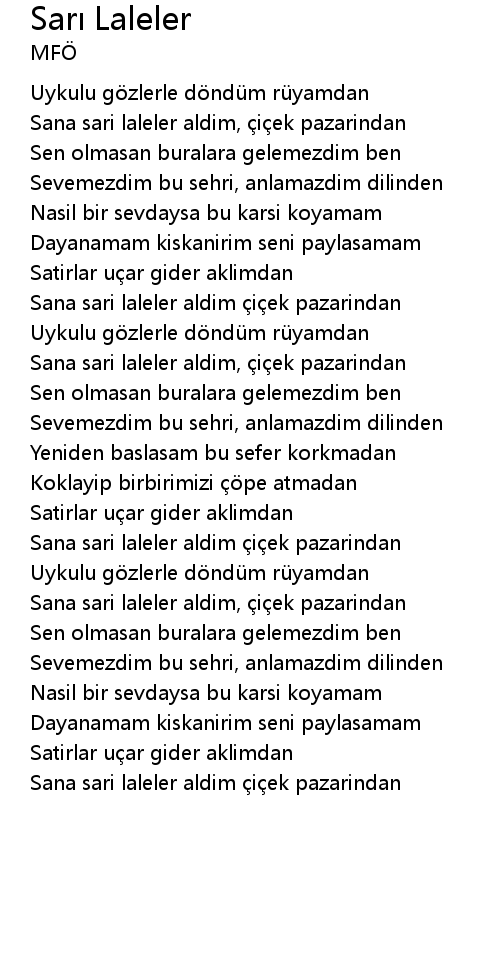 | Sana sari laleler aldim, çiçek pazarindan | |