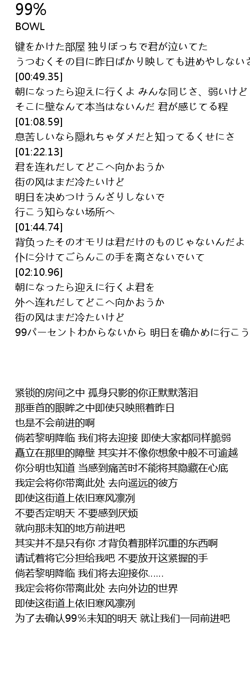 | [02:47.46] | 99パーセントわからないから 明日を确かめに行こう |