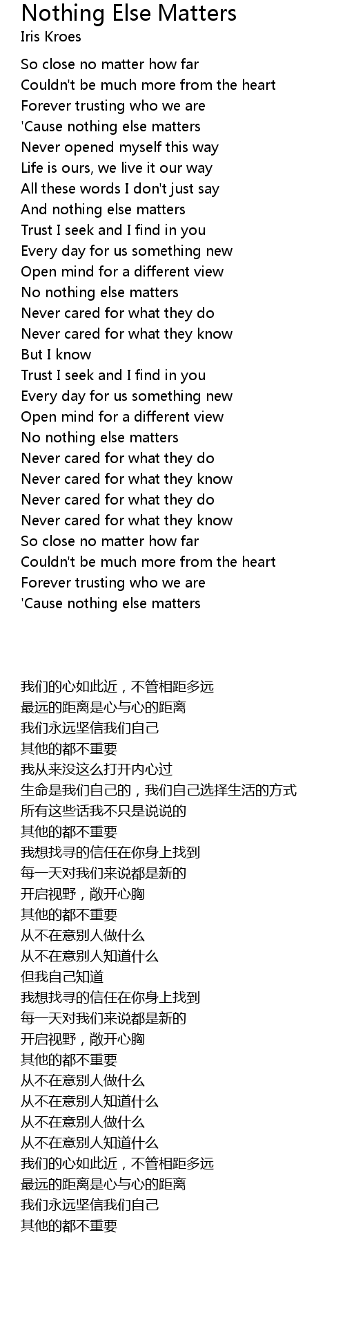 No nothing else matters |