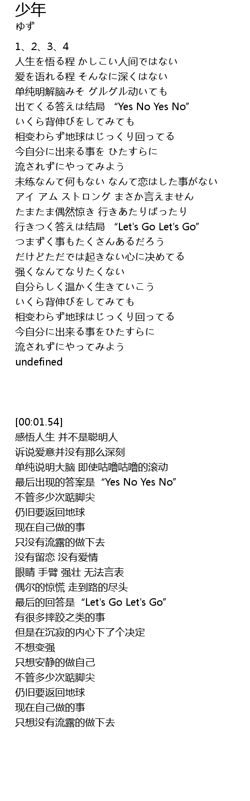 | [01:17.37] | 行きつく答えは结局 “Let's Go Let's Go” |