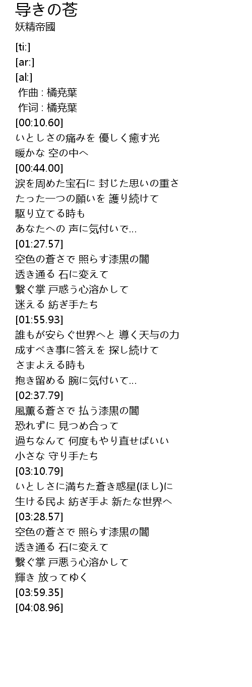 | [03:29.03] | 空色の蒼さで 照らす漆黒の闇 |