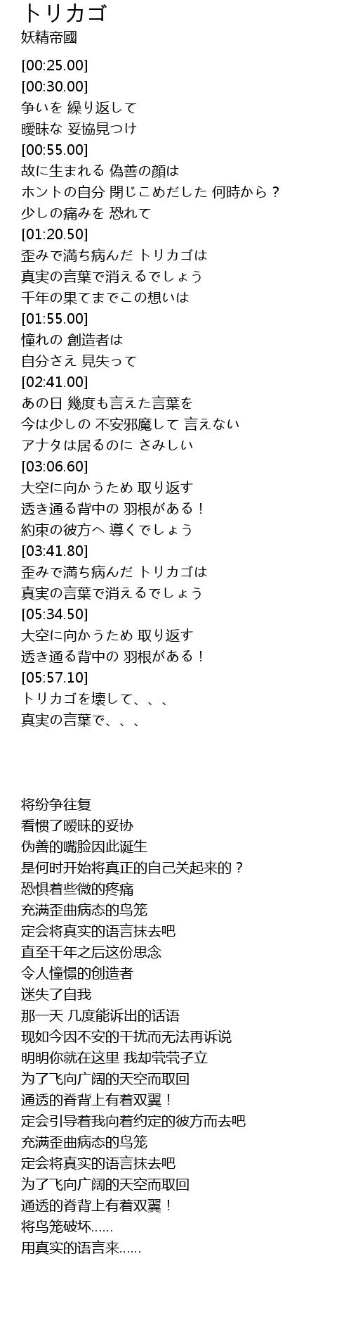 | [05:12.77] | 歪みで満ち病んだ トリカゴは |