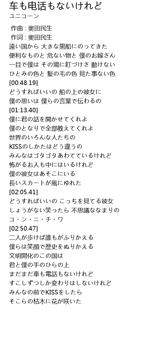 | [03:12.59] | まだまだ車も電話もないけれど |