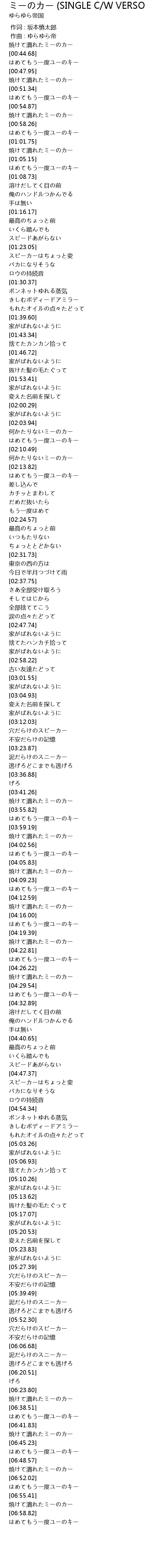 | [00:48.69] | 焼けて潰れたミーのカー |