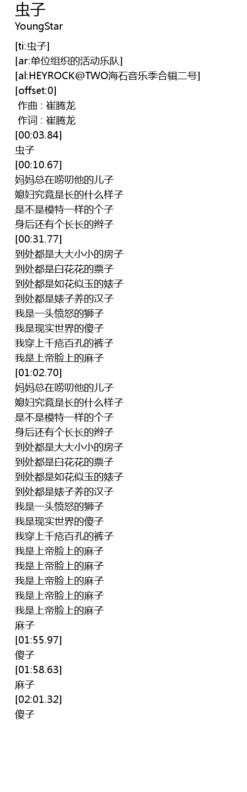 | [01:42.02] | 我是上帝脸上的麻子 |