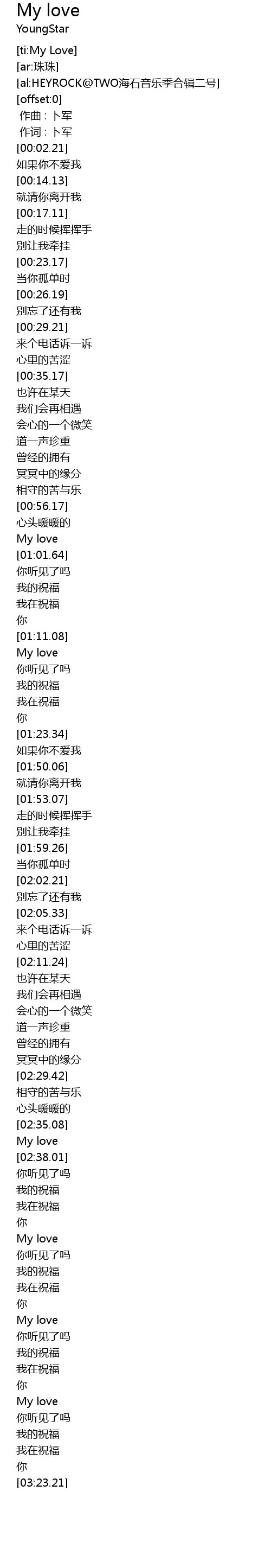 | [02:02.82] | bié wàng le hái yǒu wǒ |