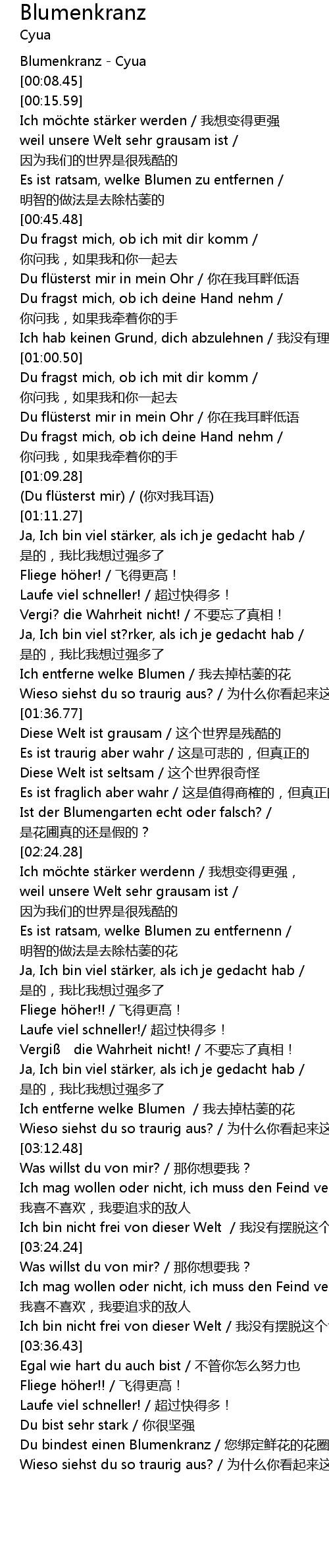 | [03:53.73] | Du bindest einen Blumenkranz / 您绑定鲜花的花圈 |