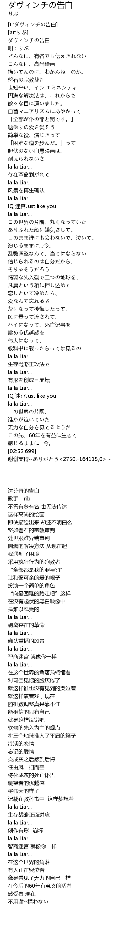 | [00:37.765] | 嘘伪りの爱を爱そう |