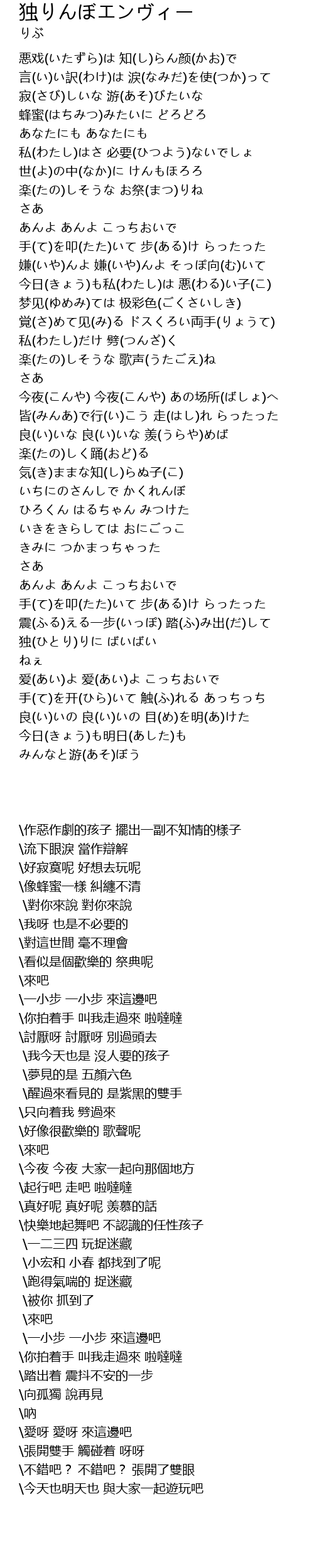 | [01:36.940] | 良(い)いな 良(い)いな 羡(うらや)めば |