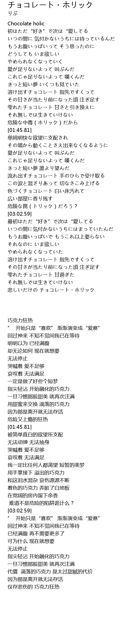 | [04:31.26] | 悲しいだけの チョコレート・ホリック |