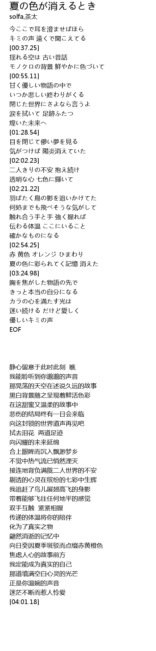 | [03:12.85] | 夏の色に彩られてく記憶 消えた |