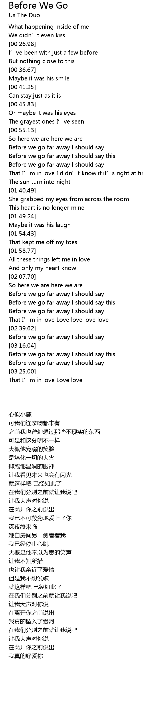| Song | Before We Go |