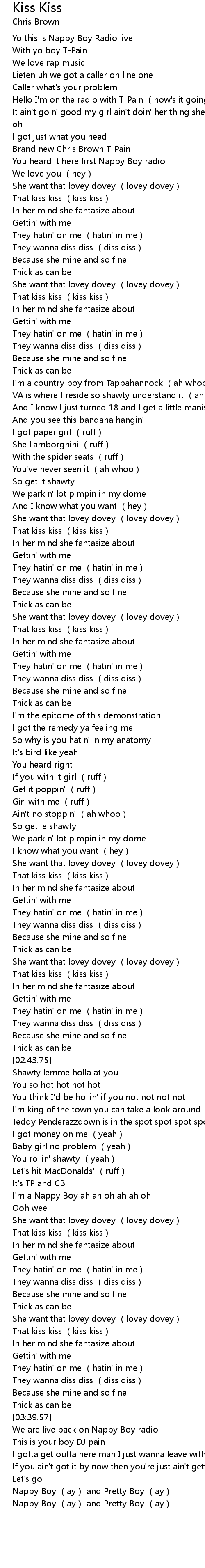 | [03:53.52] | Nappy Boy (ay) and Pretty Boy (ay) |
