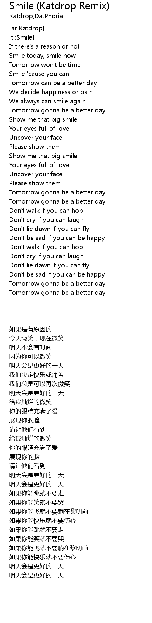 | [00:38.17] | We always can smile again |