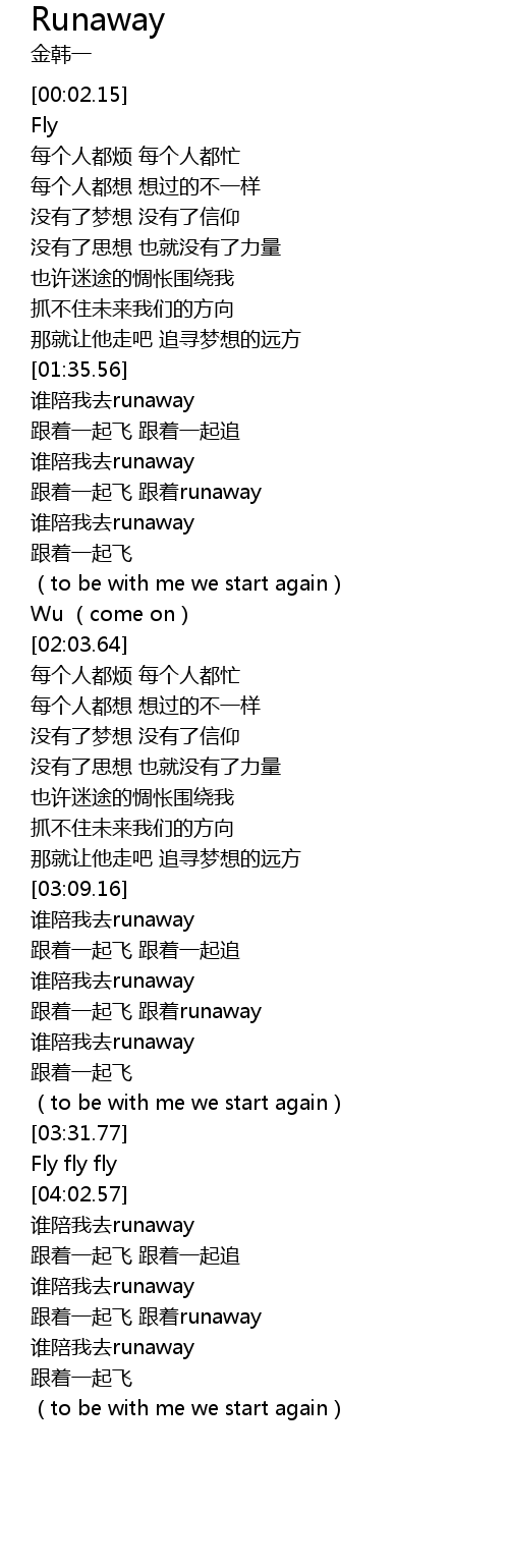 | [01:45.18] | 跟着一起飞 跟着runaway |