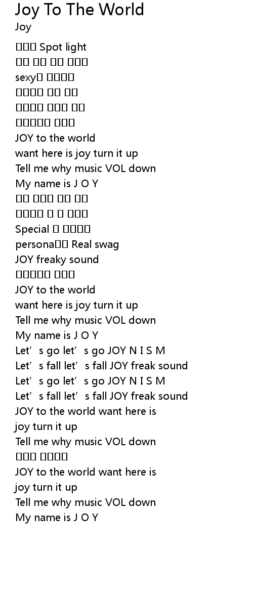 | Song | Joy To The World |
