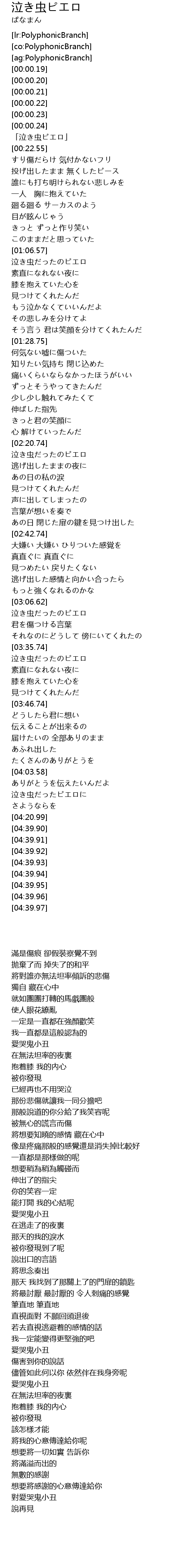 | [00:10.75] | 「泣き虫ピエロ」 |
