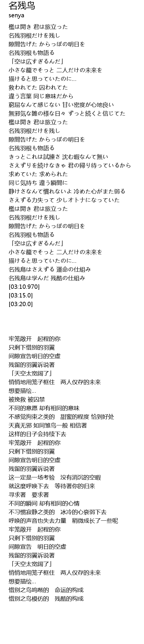 | [03:02.950] | 名残鳥は学んだ 残酷の仕組み |