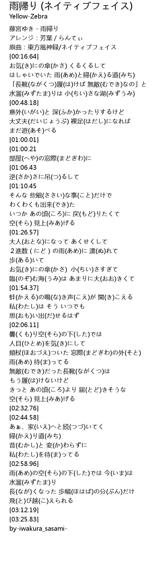 | [00:12.48] | 原曲:東方風神録/ネイティブフェイス |