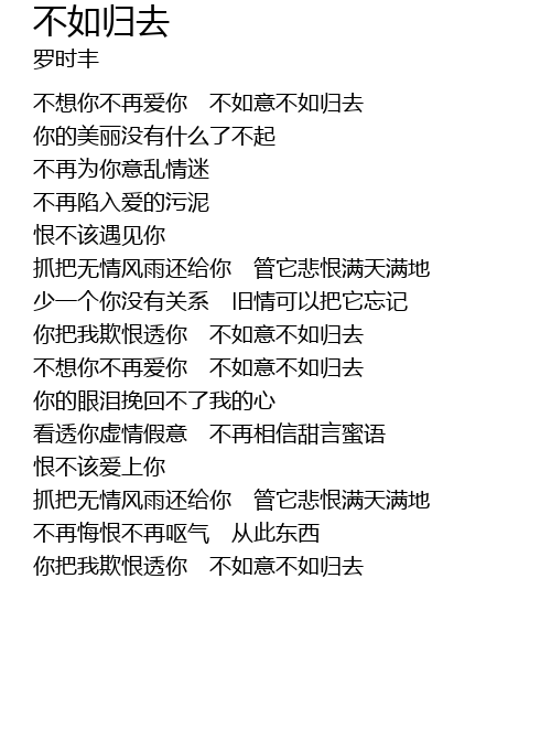 | [01:28.32] | 你把我欺恨透你 不如意不如归去 |