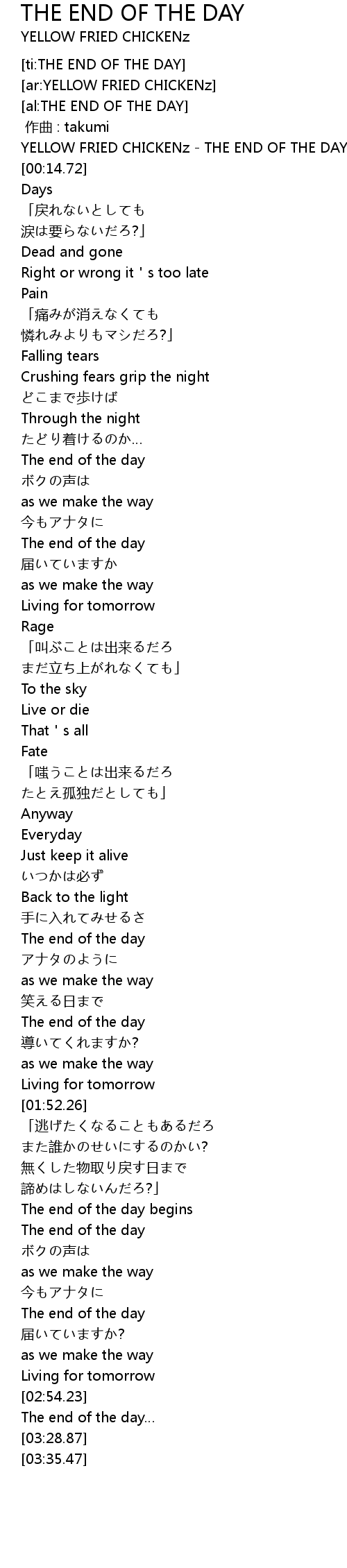 | [00:00.00] | YELLOW FRIED CHICKENz - THE END OF THE DAY |